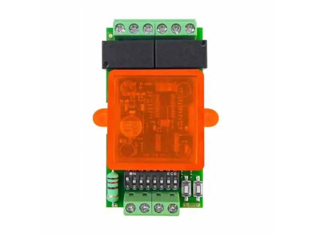 Mini ricevitore bicanale in autoapprendimento studiato appositamente per il comando a distanza di luci o altri apparati tramite uscita contatto fino a 230Vac 5A. Gestisce codici standard da 12 a 64 bit e rolling HCS© o rolling EB. 5 morsetti, led di segnalazione, pulsantino per la programmazione. Funziona come radioricevitore e decodificatore BUS.