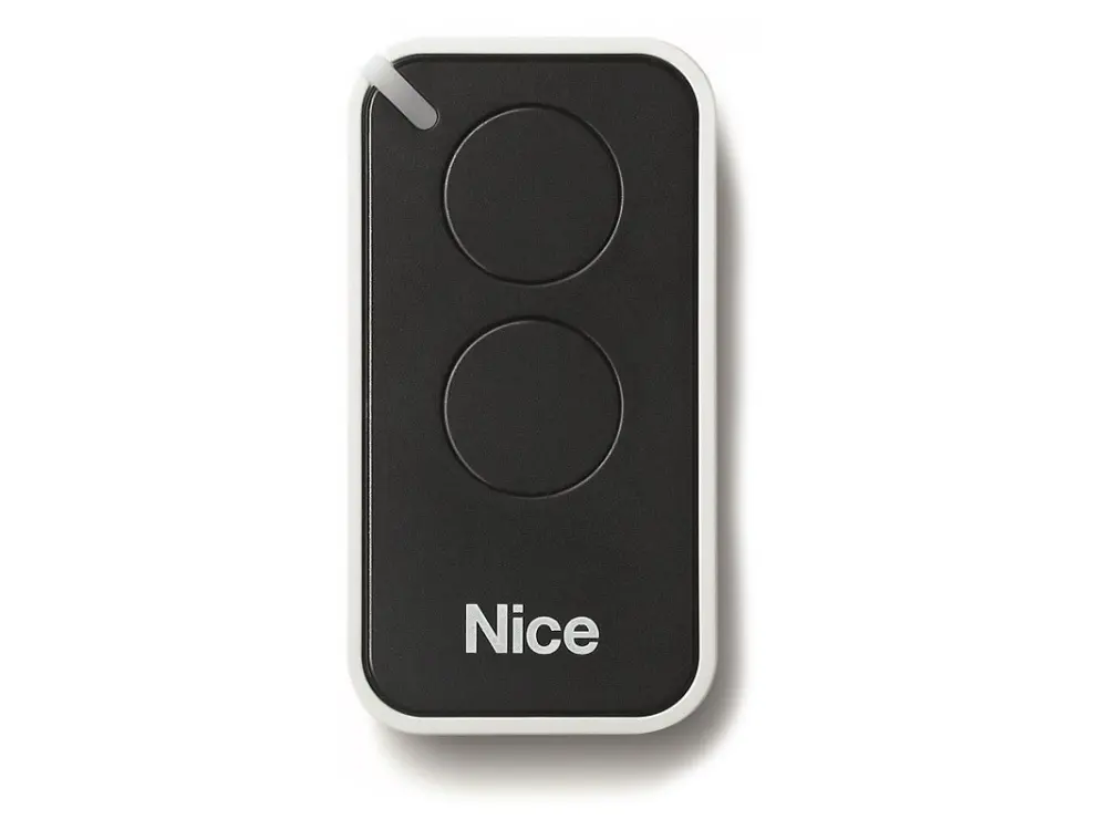 Telecomando Nice, 2 tasti, Frequenza 433,92 MHz, 4,5 milioni di miliardi di combinazioni rolling code 52 bit.